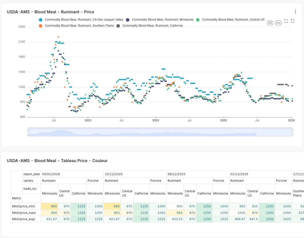 Les données alternatives : Pour une entreprise de commerce de détail ou d’e-commerce, ne vous fiez pas aux promesses du CEO. Suivez le trafic web (SEMrush), le nombre de téléchargements d’applications, ou même les images satellites. Ou par exemple suivre l’évolution du prix du “blood meal” via le site de l’USDA.